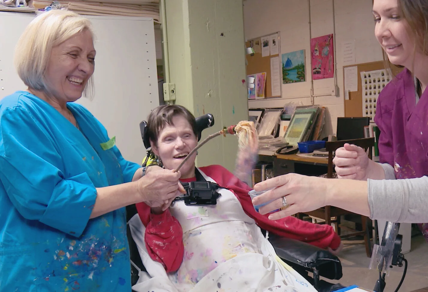 The filming for this video took two days after multiple weeks of planning. It was important for us to build a relationship with all of the participants involved so that they would feel comfortable on camera. The result showcases Denise’s journey, the beautiful relationship she’s formed with Kathleen, and the confidence she’s gained in herself through this innovative art program.